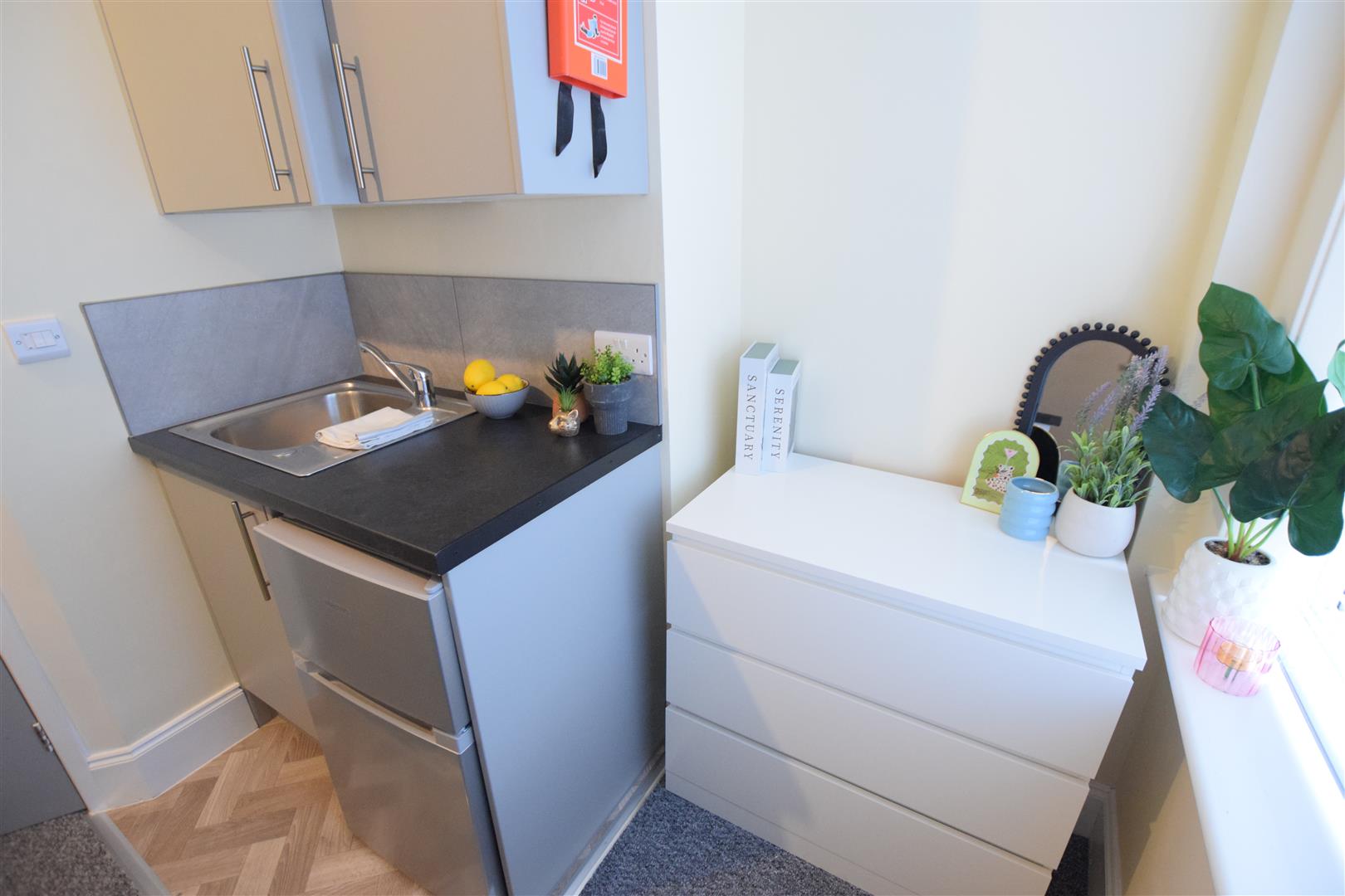 Spacious en suite apartment in the popular West End of Lincoln. A generously sized room with tea station, under counter fridge freezer, and microwave. Good sized en suite bathroom.