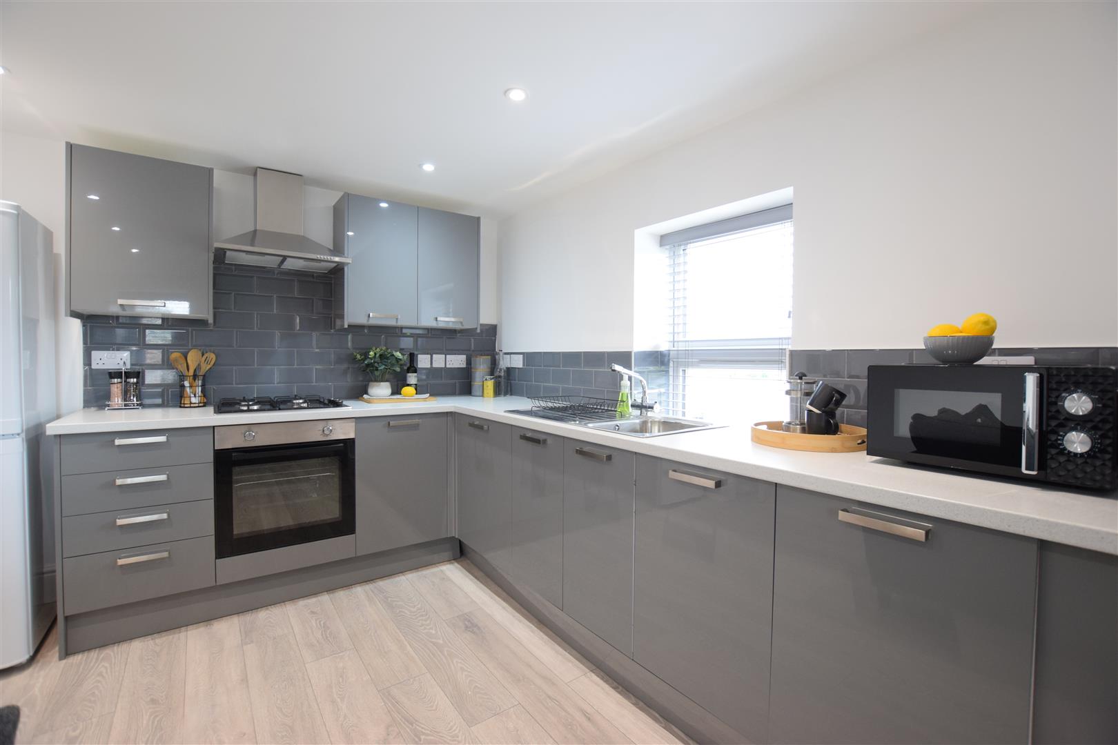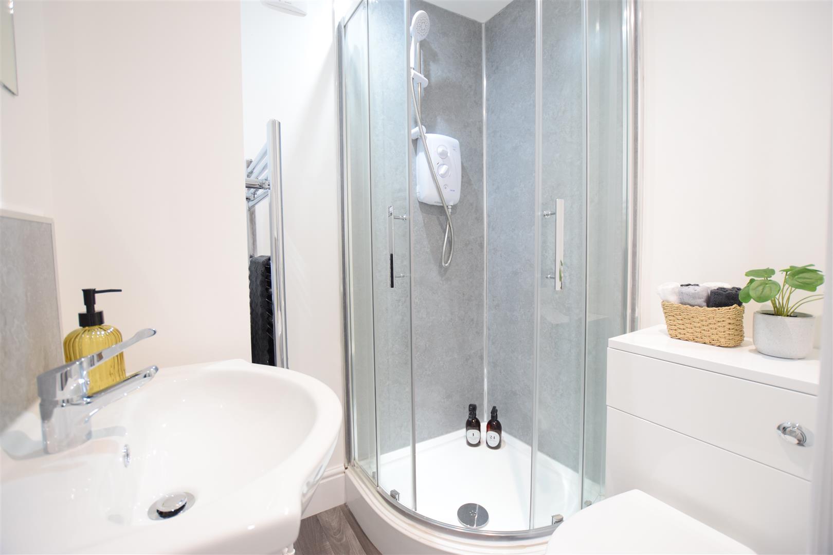 Four-bedroom professional apartment in the heart of the city, close to the High Street shops and restaurants. All bedrooms featuring an en suite modern shower room! Modern fixtures throughout and a contemporary living area.