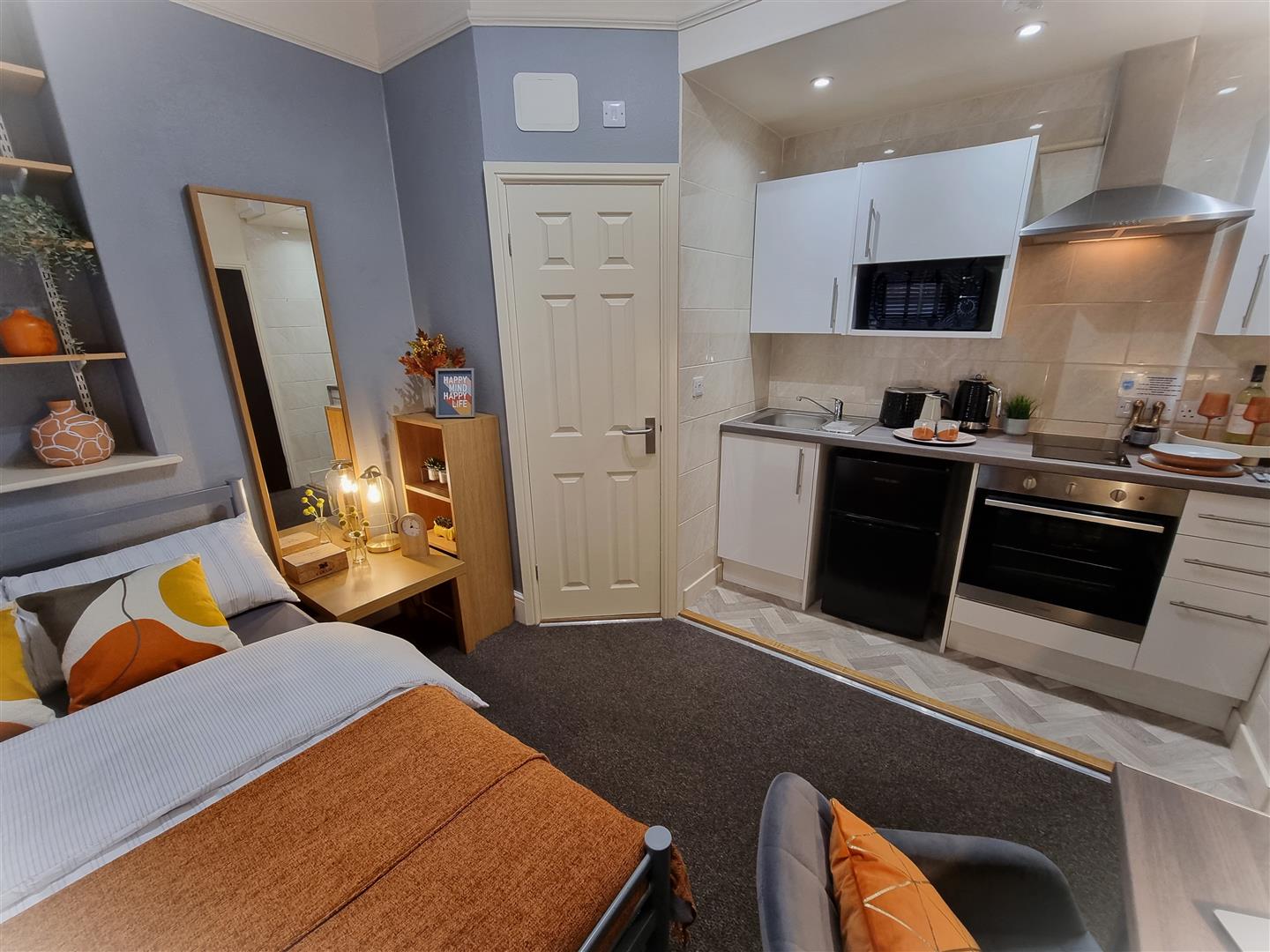 • Private en-suite and private kitchen.