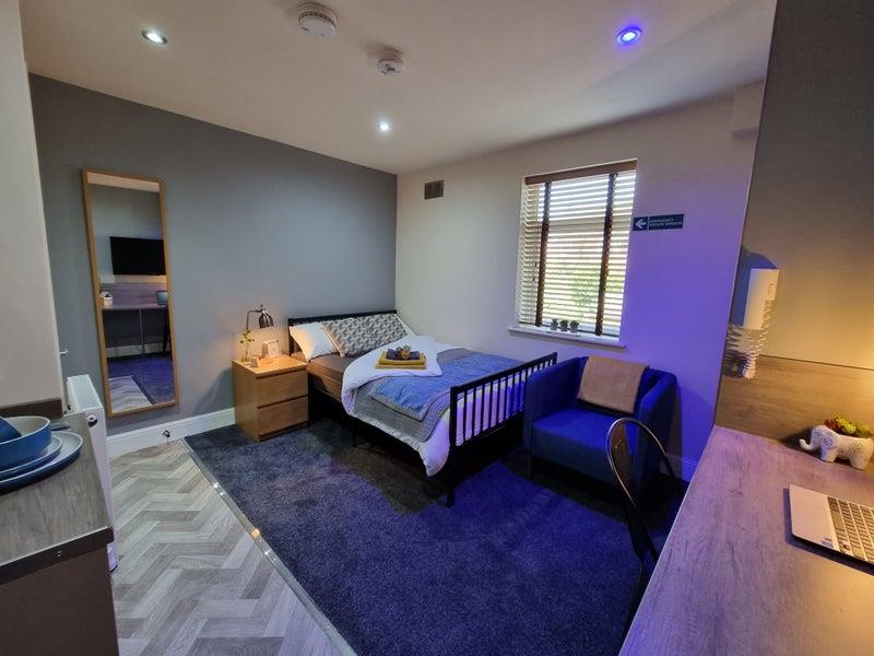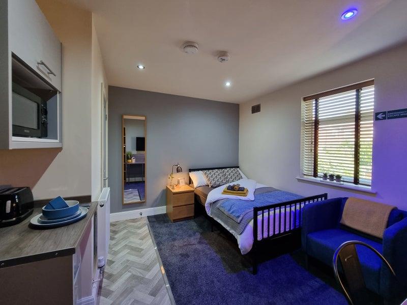 Studios may be a suitable size for couples. However occupation by couples is only permitted where this is expressly stated in the main advert wording, where both occupiers are named on the tenancy agreement, and may be subject to an additional cost of £10 per week added to the Rent by the landlord.