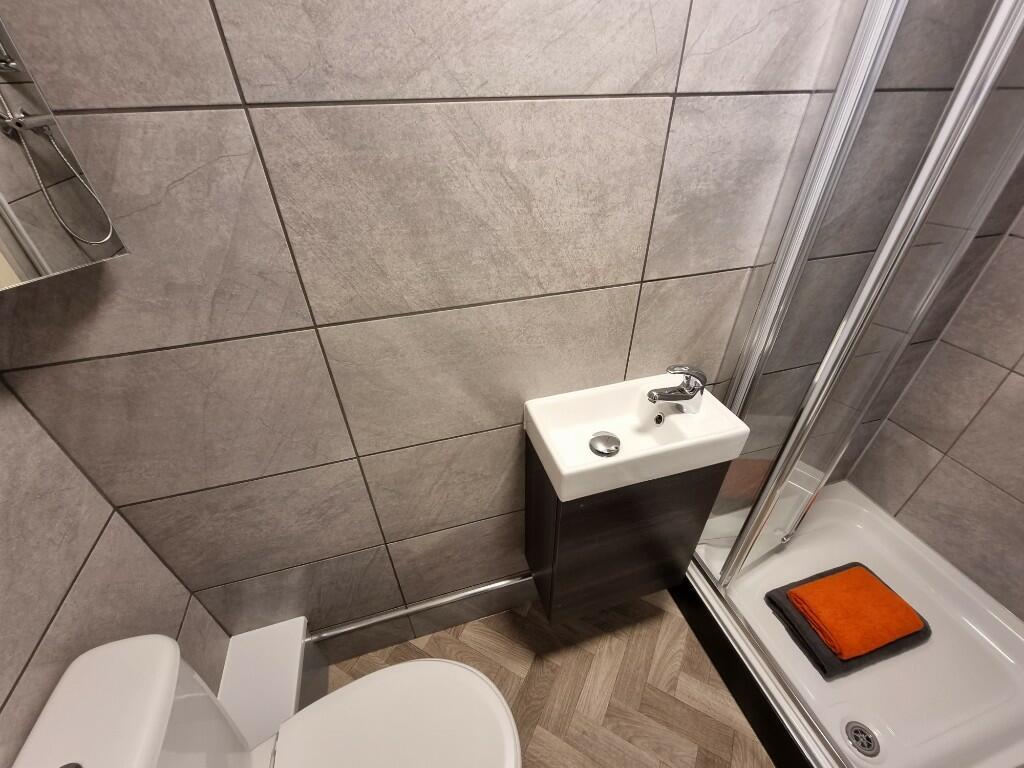 Private en-suite with shower, basin and WC.